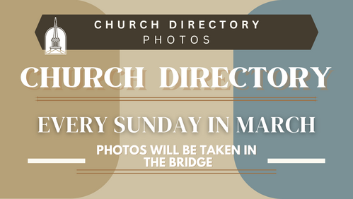 You are signing up to take your church directory photo on Sunday, March 16, 2025. Please click the button below to select your desired time slot