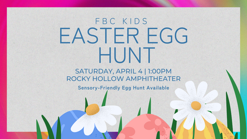Join us for our FBC Kids Easter Egg Hunt as we celebrate Easter with a fun-filled afternoon for the whole family! Kids will enjoy hunting thousands of eggs, prizes, treats, and a joyful time together as we celebrate the hope of Easter. This free community event is designed especially for children and families, with a designated area available for children with special needs to ensure every child can participate and enjoy the experience.